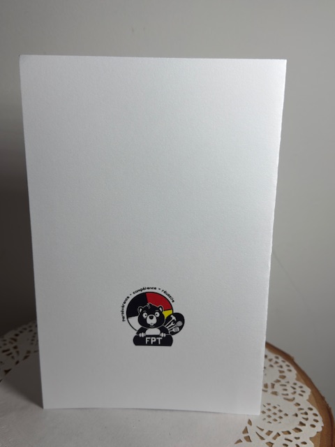 Offrez une carte qui a du sens. Cette magnifique carte de souhait met en valeur une plume inspirée de la culture autochtone, symbole de sagesse, de respect et de liberté. L’illustration a été réalisée avec soin par les élèves dans le cadre de leurs ateliers de création.